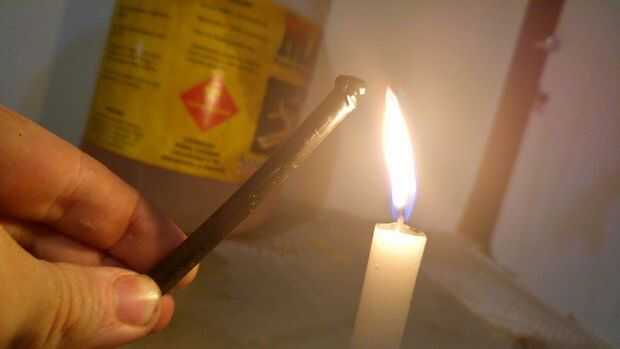 Y otra vez, el poderosa y útil de la vela, para derretir el pegamento hacia abajo.