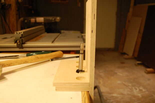 Los cinceles son anchos, los agujeros superiores también tienen que ser anchos. Para la mayor parte (no tiene una broca de 1 1/8" forstner), hice estos agujeros 1/8" más ancha que el cincel en cuestión.