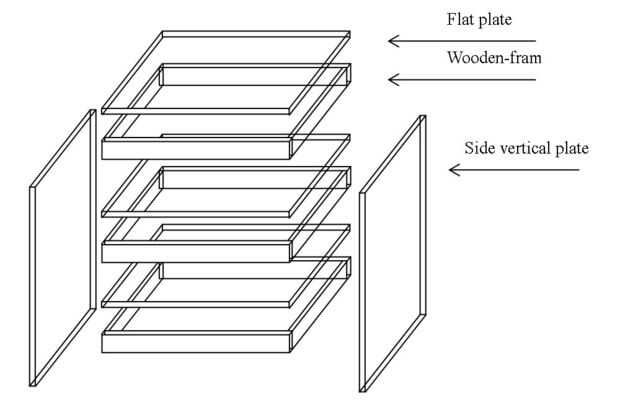 3. para elegir un mosaico de la tira ancha de madera plano, como una placa vertical lateral, montada en la parte superior e inferior dos placa de rejilla horizontal, en un estante del almacenaje marco general;