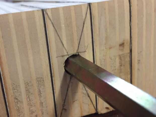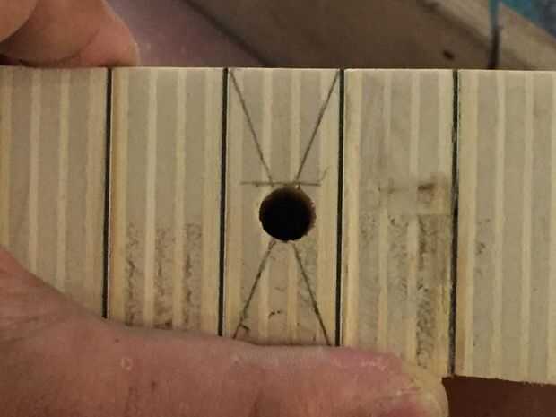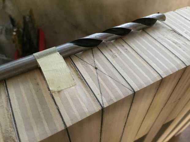 Finalmente marqué el centro en el lado de la segunda y el cuarta soporte pivotante, y perforé los agujeros.