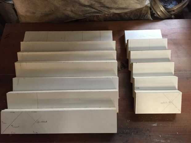 -7 x (26 cm x 5 cm) para los estantes y los bloques de la parada
