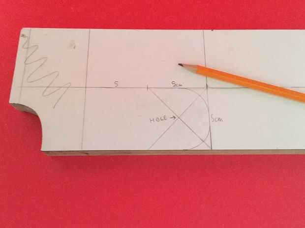 Para colocar correctamente el trozo recto de madera, medí la distancia entre la cuchilla de mi rompecabezas al borde de su soporte de metal (en mi caso 3, 2cm), y luego sujeta el trozo de madera de 3, 2cm de la línea marcada. (En la foto #4 se puede ver la prueba de corte que hice antes de cortar la madera contrachapada laminada para asegurarse que las medidas tenían razón)