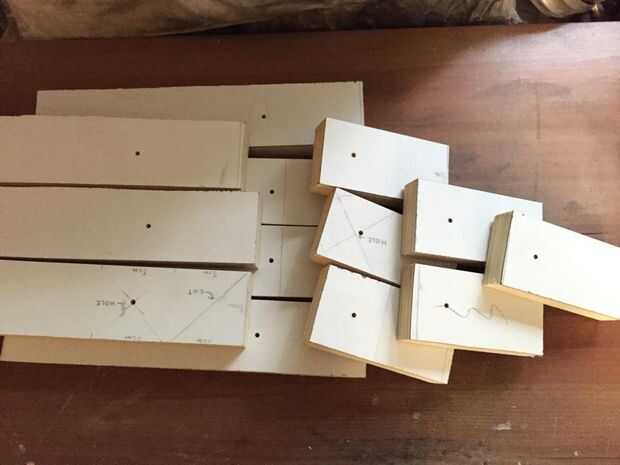 P.D. Inicialmente pensé hacer un extremo curvo de cada soporte de pivote (como en mi cartón boceto), pero luego decidí hacer todas ellas rectangulares como las piezas más largas. En la siguiente versión, que estoy pensando en hacer todas las piezas curvadas.