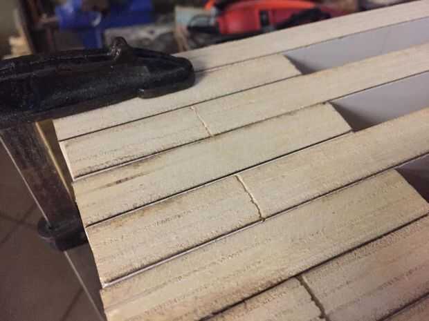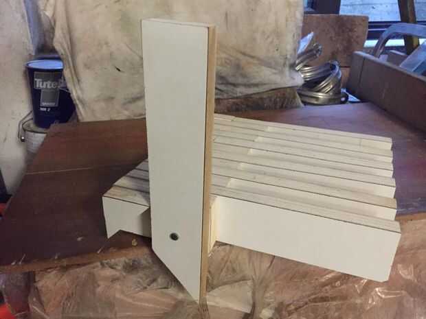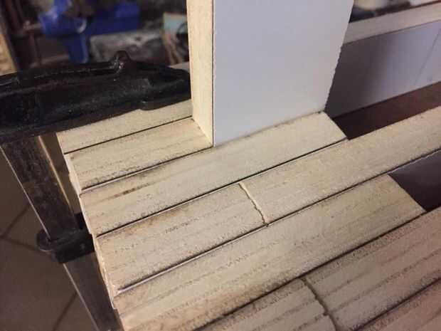 Deben empezar con el bloque de tope (con un pequeño hueco por el corte de 45 °), y deben dejar verticalmente contra el borde del triángulo.