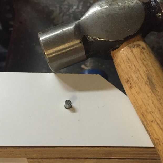 Una vez que el movimiento es perfecto, puede golpear el pivote. Corte el exceso usando una sierra de mano y luego use un martillo de bola para aplanar el extremo.