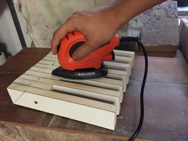 Finalmente utilizar una lijadora orbital lijar todas las superficies quitando cualquier imperfección de la izquierda.