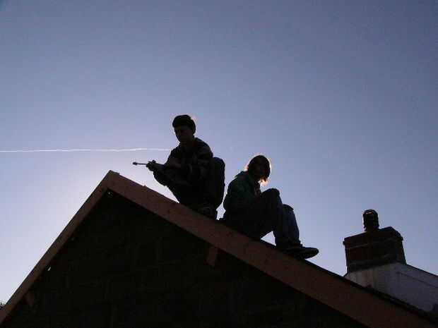 Este fue mi primer intento de un techo tradicional de "corte". No uno que se ha entregado en la parte trasera de un camión de cama plana. Cada pieza se corta y se unió a in situ, que comprende un; A-Frame (o armazón hastial), correas, vigas y rastreles.