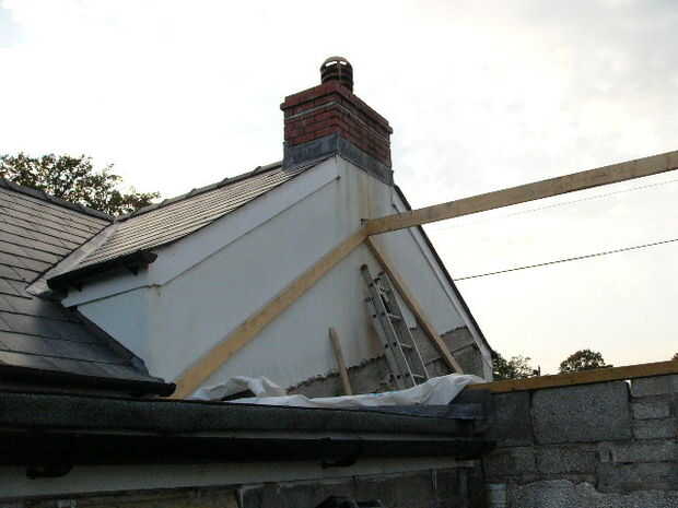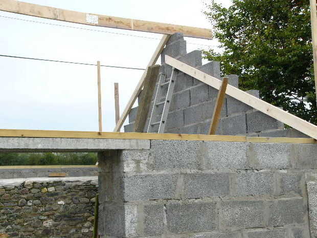 Para la vida de mí, no podía calcular las capas de madera, particularmente la altura de lanzamiento de un marco, así que procedí en orden inverso. El un aspecto que permanece constante es el techo, por lo tanto, empecé con ellos y trabajó hacia atrás, deslizando las correas en lugar bajo las vigas y luego incorporado el marco último.
