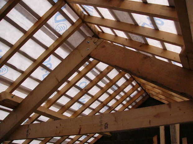 Una vista interna de las maderas del techo antes del trabajo final.  Bueno :-)
