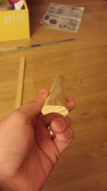 longitud de perfil cornisa de madera que se muestra en la imagen 60cm (4x15cm segmentos) encontré esto en Homebase en la sección stripwood