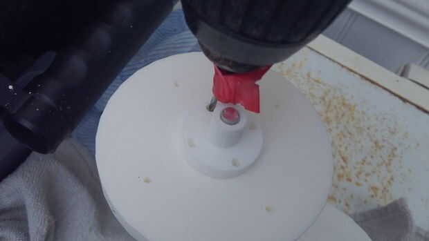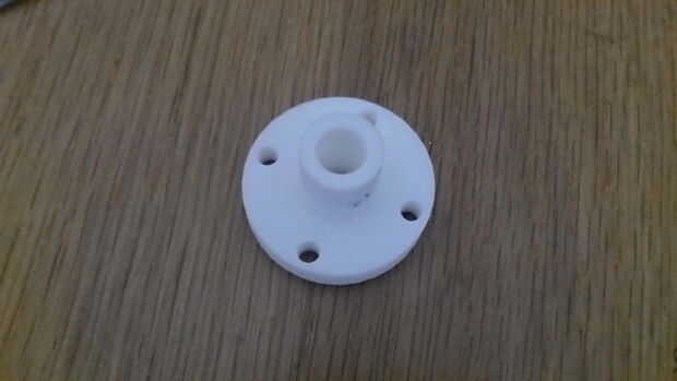 Pop el disco en el eje (o en mi caso uno de los soportes de aluminio de 4,75 mm) pone dos toques de pegamento alrededor (no en el centro!) el orificio central para fijar al eje FIXER. Coloque al fixer de eje en y ajustarlo al centro, el agujero es un poco más grande así que asegúrese de centro lo mejor puede por el ojo. El pegamento va aguantar así que usted perfore los agujeros a una profundidad de 10mm de la (5mm en el disco principal, 5mm a través del orificio de fixer de eje = 10mm). Utilice tornillos de 4 x 2,5 x 10 mm para fijar a fixer de eje en su lugar. Usted también necesitará un tornillo sin cabeza a la hora de fijar el disco en el eje posterior.