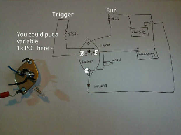 Soldadura de dos alambres 150mm largo el emisor (uno se vaya a correr-) (el otro va a la bobina de disparo AWG26)