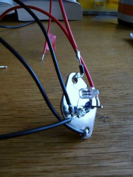 Mira los pins y orientar verticalmente delante de usted con las clavijas más lejos lejos de usted. El pin izquierdo es la 'Base' y el pin derecho es el 'emisor' soldar un diodo IN4001 a través de los pasadores con la banda plateada en el diodo hacia / señalando en la parte izquierda ' Base'.