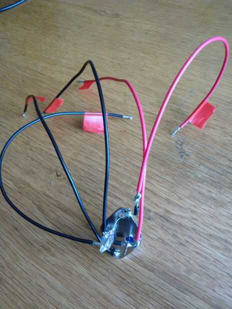 Otro alambre en el extremo opuesto del colector (uso algunos vientos alrededor de otro orificio para tornillo y soldadura) de la soldadura (esto va a poder bobina AWG23 y desde allí a carga-)