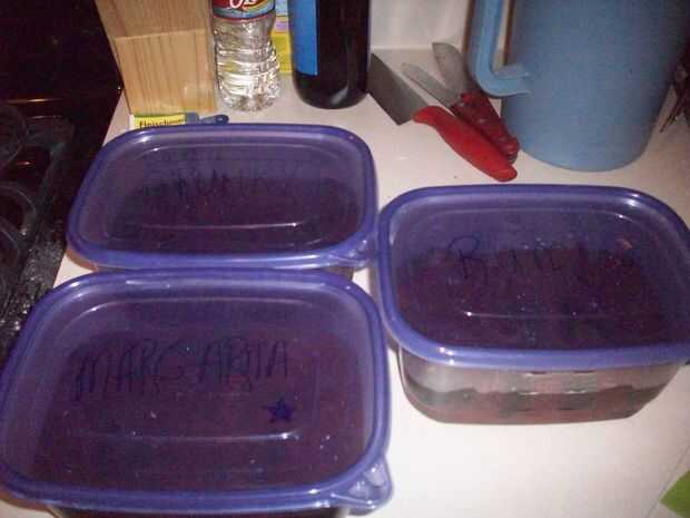 Luego mezclar el gummi lleva alrededor y cada tapa la etiqueta para que sepas que sabor a añadir más tarde.