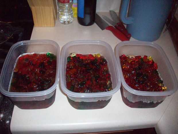 Siga los mismos pasos con los osos de la vodka y el concentrado de ponche de frutas.
