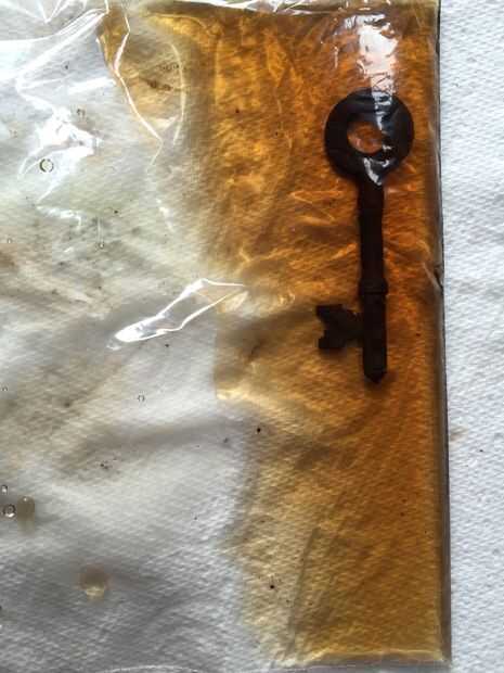 Para probar el método de la bolsa he puesto una llave oxidada en una bolsa de zip con un poco de vinagre.