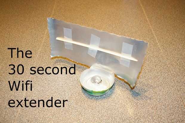 Se trata de un reflector super fácil a señales WiFi a donde usted lo necesita. La primera de ellas literalmente demasiado me alrededor de un minuto para hacer. Aquí he visto otros pero este es capaz de pararse en su propio y sólo utiliza 3 materiales