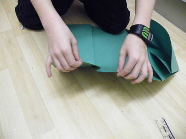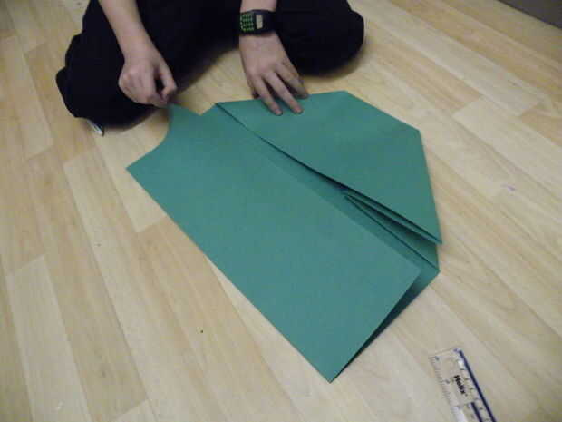 Unos 15cm de la parte inferior del papel, doble hacia arriba y hacer un pliegue agudo.