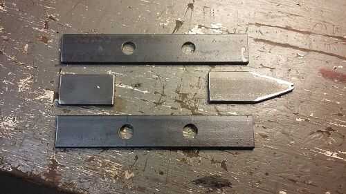 Aquí puedes ver los que he terminado los cortes. También se trata de la orientación básica de cómo la laminación se reunirán. ¿Por qué utilizar varias piezas de acero y no una barra plana con un orificio perforado en ella? Bien, con sólo una barra el pin tendría la tendencia a tambalear a más. Que se separa la carga a través de una mayor anchura y tener dos puntos de contacto hacen el pin muy estable mientras que agrega tensión al cable.