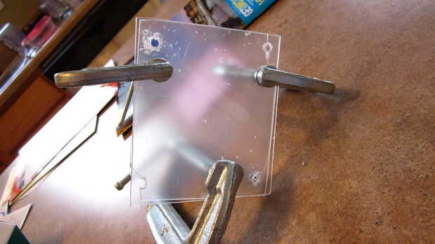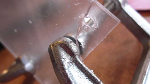 Originalmente intentado usar acrílico, se agrietaría demasiado fácilmente cuando trató de perforar a través de él.