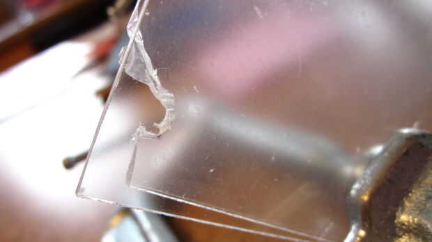 Después de perder una hora y una hoja de $4, cambié a Lexan. El Lexan tomó mucho puntaje para pasar. Este material no se rompe fácilmente.