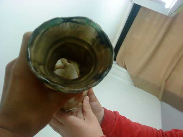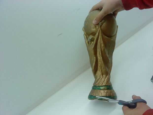 Primero se hace una incisión en la base del trofeo con tijeras, y retira la base. Se sugiere quemar los bordes con el soldador para que sea más suave. Deje un agujero para los cables del interruptor.