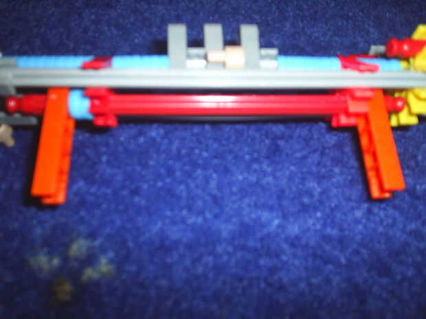La bodega de la munición puede almacenar 5 de cualquiera de los dos barras amarillo o azul barras dependiendo de opción propia, añadir espaciadores azul 2 entonces 2 conectores naranja donde muestran y conecte el soporte de munición a los conectores naranja, FTP