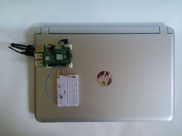 - Posicionamiento el RPi para que los cables no consigue estirados cuando abres la tapa del portátil