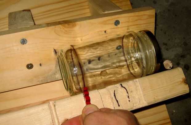 Después de hacer su puntaje, lentamente calienta la línea vertiendo agua caliente en un flujo constante, girando la botella todo el tiempo. Luego puso la botella en agua fría, corriente del grifo, otra vez mientras se hace girar la botella. Generalmente tarda dos o tres ciclos de la botella romper en dos.
