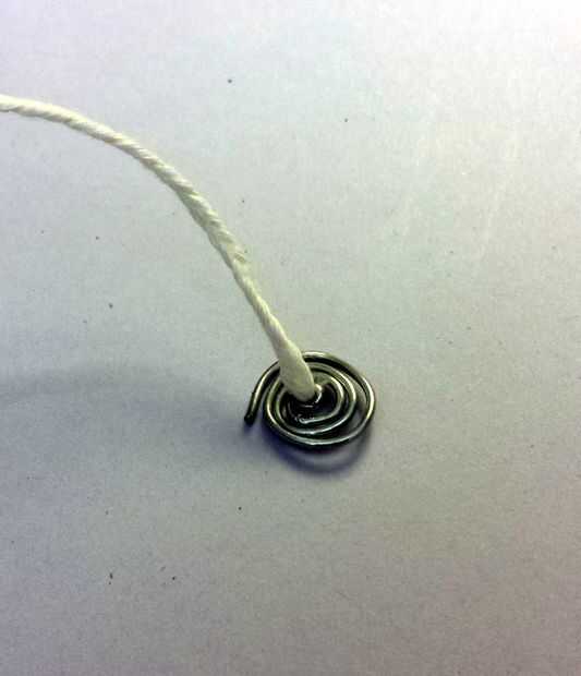 Se necesita algún tipo de peso para evitar que la base de la mecha flotante encima de la cera. Utilicé una encrespada encima de clip, pero han también piezas usadas de sopa puede, ni un centavo, una lengüeta de una lata de soda y pesos rescatados de comprado velas.