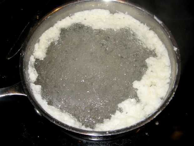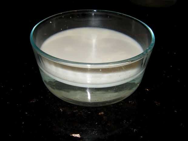 Coloque el recipiente en un lugar fresco, y los ácidos grasos se solidifican. Entonces pueden aparecer un disco muy bonito, aceitoso, que tiene sólo un tenue olor a jabón.