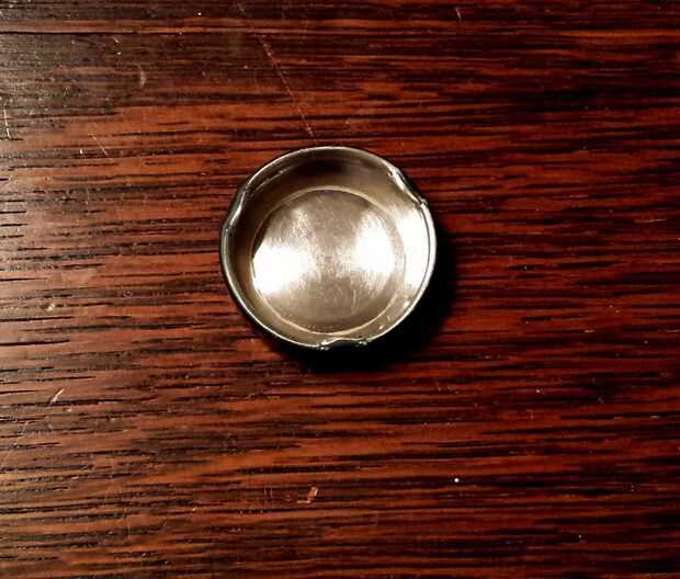 Esto es realmente más de una adición. Usted siempre puede soplar su vela, pero un apagador es una cosa hermosa, y se añade dicha simetría a nuestra creación! Para el apagador puede utilizar la tapa de la botella de té de hierba, o cualquier otra tapa de tamaño adecuado. Lija lejos en el interior, pero creo que era probablemente innecesario. Lo de sello plástico fue quitado con algunos acetona y algunos raspado.