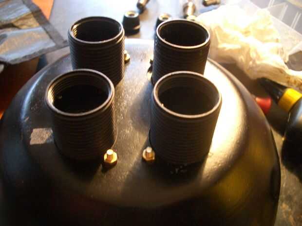Después fue endurecido el pegamento atornilló las tomas a la taza.