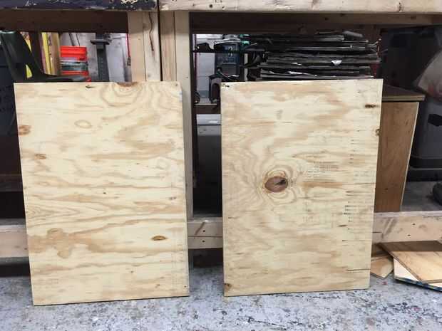Cortar dos 2' 1/2 "x 14", pedazos de madera (de la misma pieza original de la madera contrachapada).