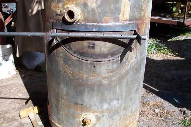 Ahora que tienes esto se burlaron hasta necesitará probar para hacer las cosas de seguro columpio/cierre correctamente. Una vez conectado el tanque vertical permanentemente a la horizontal esta barra tendrá que colocarse por el exterior del tanque horizontal y en la parte plana prefabbed placas y luego soldada a la placa de la compuerta. Por esta razón a este punto solamente hemos virado cosas juntos.