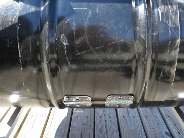 Una vez tienes los párpados cortados, prácticamente cualquier persona puede colocar una bisagra. Coloque la tapa sobre el ahumador donde pertenecen y trace una línea alrededor de ellos donde van las bisagras. Añadir un par de arandelas entre las bisagras y el fumador para "levantar" la bisagra y compensar el espesor de la tapa, luego simplemente coloque la bisagra asegurándose de que la articulación está alineada con la línea que trazaste. Poner la puerta en su lugar, taladre los orificios donde sea necesario y luego fije las bisagras a la puerta. (Imagen 2)