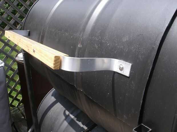 Por último, utilizando unas tiras de aluminio, doblarlas en las formas de soporte necesario para crear asas. Para reducir aún más el calor que las manijas, dividir un par piezas de 1" espesor madera, a ambos lados de la manija Tornillo y perno de la manija para las puertas. Al crear las manijas, asegúrese de que está colocaron lo suficientemente "interior" en la puerta para que los pernos no golpee la parte interior del cañón cuando se cierran. (Imagen 1) Vuelva a colocar el termómetro en lugar y pernos en.
