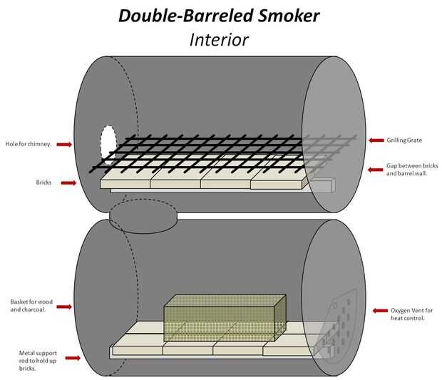 Así que este es el diseño que se me ocurrió. Como puede ver en la imagen 2, la idea es tener dos tipos de control sobre el fumador. Humo y calor. Mediante la separación del quemador en un segundo tanque que se encuentra debajo de la primera, esto simplifica notablemente mi capacidad para controlar tanto. Mediante la adición de ladrillos (firebricks son una necesidad) para el diseño, podré retener el calor y mucho más fácil regular la temperatura del ahumador ajustando la cantidad de oxígeno (aire) que dejé "Ventilación de oxígeno" (imagen 1). Revisar el #2 y #3.