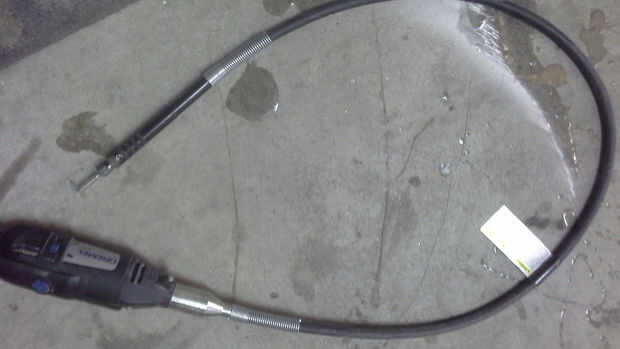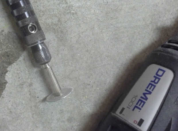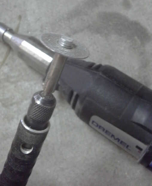 Tome la herramienta Dremel y fije un diamante recubierto cortado rueda.