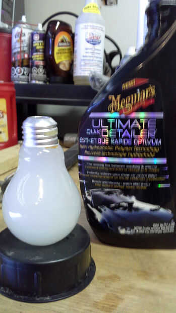 Una vez seco - me gusta usar cera y removedor de grasa para deshacerse de la suciedad restante que no quita el agua. (recordad: agua y aceite no se mezcla) Vierta en el bulbo, sacúdalo para arriba y luego vacíe el contenido en envase.