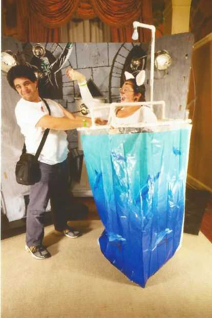 Para el traje de mi novio, usé una camisa blanca, corte estratégicamente para parecer fue atacada pero un animal con garras, había pintado con sangre falsa y utiliza tatuajes temporales de arañazos.