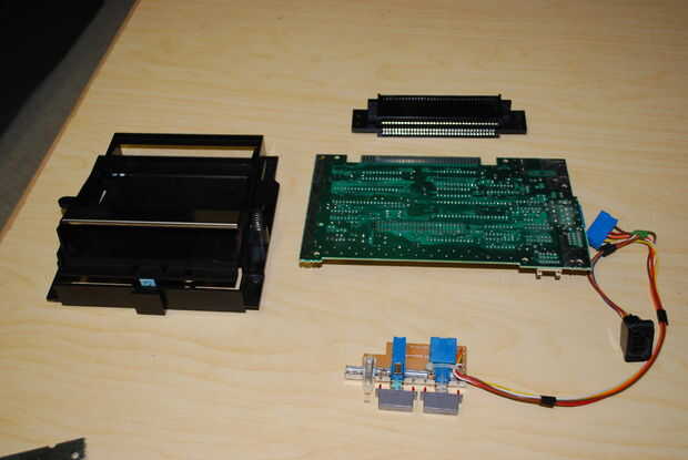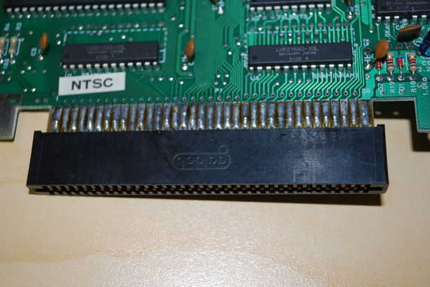 Para la placa madre de la NES, necesitaba hacer un par de cambios. El conectador del cartucho de fábrica es notorio para no trabajar. Todo el mundo sabe que después de un tiempo se desgastan los conectores originales y ninguna cantidad de limpieza tus juegos conseguirán trabajo (no soplar en ellos, mata a humedad). En primer lugar, el conector original requiere que inserte el cartucho, luego presione hacia abajo para facilitar el mejor contacto con los pernos. Yo sabía que no quería ese tipo de mecanismo para mi proyecto, sino más bien un conectador del estilo de toploader. Afortunadamente, Galoob ya tenía la respuesta para mí con el optimizador de GameGenie. Utilice su extractor de humo soldadura. Al desoldar el conector de un GameGenie desmontar y soldar directamente a la placa madre de la NES, tiene el conector NES compatible perfecto. Me aseguré que limpiar todas las clavijas/conexiones antes de soldar y usar la pasta de soldadura para garantizar buenas conexiones sólidas.