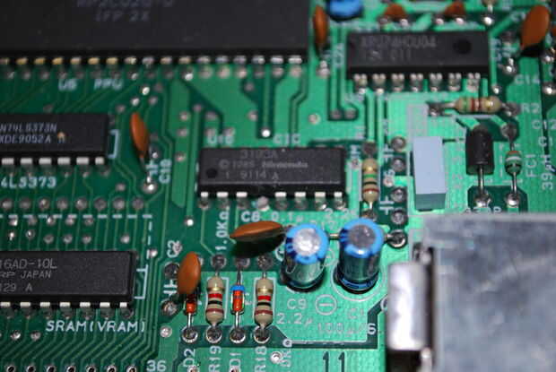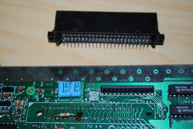 Ahora ya tengo un PowerPak de http://www.retrousb.com que quería utilizarlo para su provecho. Consolas NES normal no tiene soporte para las capacidades de sonido ampliado del sistema de disco de Famicom y Famicom. Sin embargo, si utilizas el PowerPak NES de Retrousb, puede escuchar estos sonidos, haciendo una pequeña modificación a la placa madre. Todo lo que tienes que hacer es soldar una resistencia de Ohm 47 de k entre el Pin 3 y Pin 9 en el puerto de expansión. Fui más allá y había quitado totalmente la ranura de expansión, pero no es necesario. Pero la parte que muestro en la imagen es realmente la parte inferior de la placa madre donde normalmente está la ranura. Usted tendrá que soldar la resistencia en el otro lado si quieres hacer este mod sin quitar la ranura de expansión.
