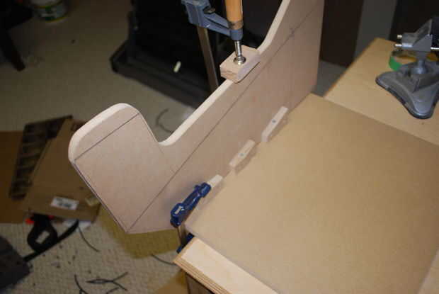 Ahora que el controlador ha terminado, puedo comenzar la parte superior del edificio de la mitad del bartop. A diferencia del controlador usé tornillos para sostener esto juntos. Agujeros y había hundida todos mis agujeros. A continuación, una vez que todas las piezas estaban listas pegué alguna parte la estar tocando una pieza diferente de la madera. Luego todo atornilladas y fijarlo mejor posible. Al sujetar, utilice siempre un pedazo de madera entre la abrazadera y la pieza acabada para protegerlo de cualquier marcas o muescas.