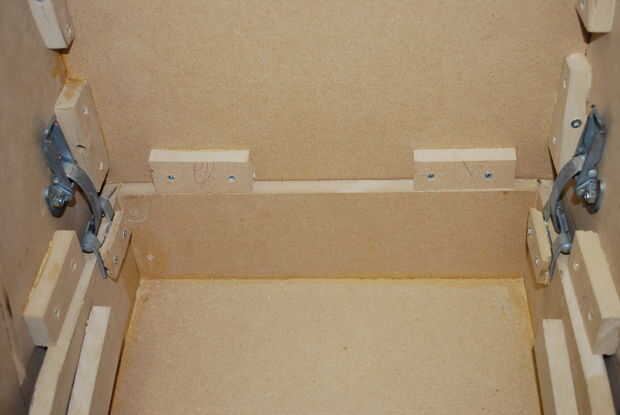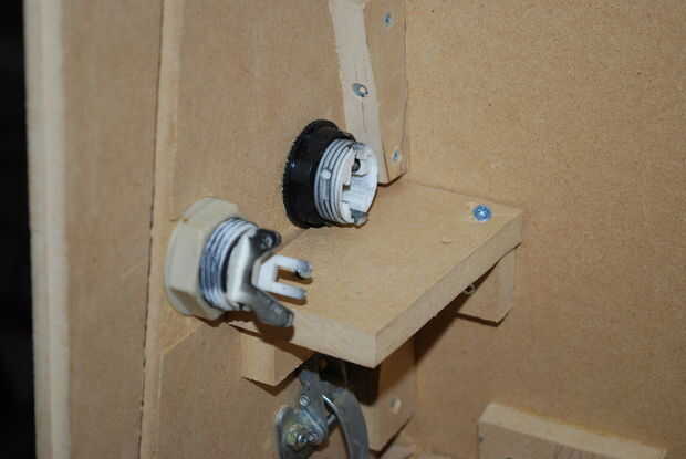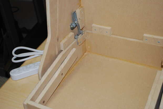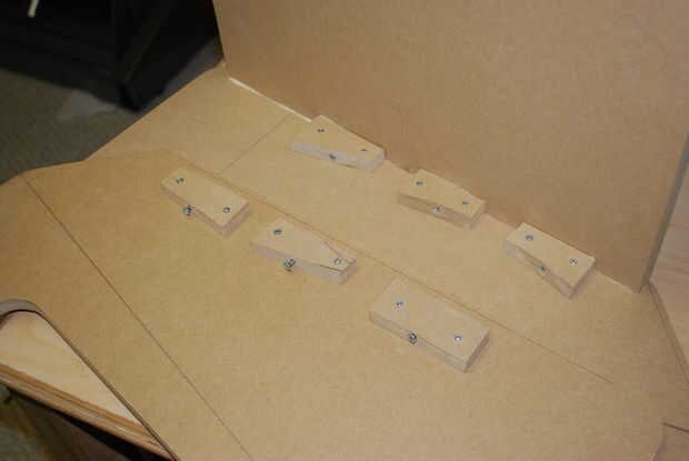 Una vez que los bosques fueron cortados, tomé tres pedazos de chatarra por cada lado atar a la espalda. Hizo esto para ambas partes, pero sólo les pega un lado en un momento. Una vez los lados y la espalda juntos, es hora de poner bloques alrededor del borde de la caja del regulador. Esto es así cuando se aprietan las abrazaderas, tira el regulador contra algo que es completamente sólido y nivelado (cuando conectados entre sí, sienten como una unidad completamente sólida). Una vez que todas las paradas estaban pegadas, atornillados, y seco, he instalado las abrazaderas.