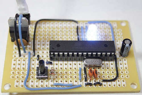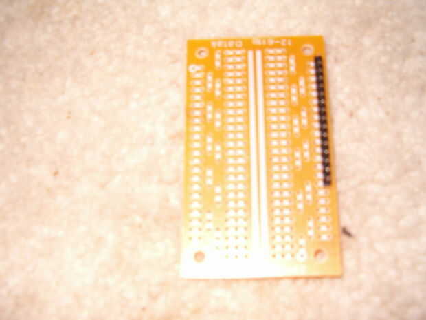El perfboard va a ser el eje central de su caja. El servo, GPS, LCD, baterías, relé e interruptor todos conectará a esta placa en una forma u otra. Antes de entrar en cualquiera de esas conexiones sin embargo asegúrese de que se puede ejecutar un simple abrir y cerrar programa LED demostrado en jmsaavedra's instructable. Esto le permitirá saber si la placa está trabajando para comenzar con antes que complica cualquier proceso de solución de problemas con los cables más.