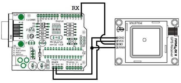 Nota: no Conecte la línea TX del GPS a la RX del arduino como se muestra en los diagramas. Esto es porque necesitamos usar el pin RX de arduino para la programación y reprogramación de propósitos. En su lugar simplemente conectarlo a cualquiera de los pines digitales 2 a 13.