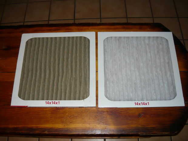 El filtro que elegí es un alergénico Extra 1085 Filtrete. Filtros de suciedad, pelusa, polvo, polen, residuos de ácaros del polvo, esporas de moho, Dander del animal doméstico, humo y Smog ($10 en Lowes). Puede más o menos de su filtro.