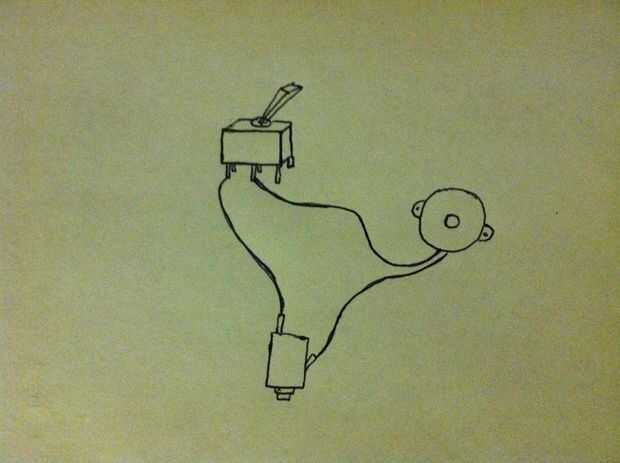 En este punto debo reconocer mi falta de experiencia a la hora de dibujar cualquier tipo de esquemas... así que le saqué una foto!  Sólo necesita 4 contactos poco la soldadura y listo ir.  Nota: El interruptor está conectado desde el medio prog y el diente izquierdo si te enfrentas al switch con la dirección de 'ON' a la derecha (como en la imagen).